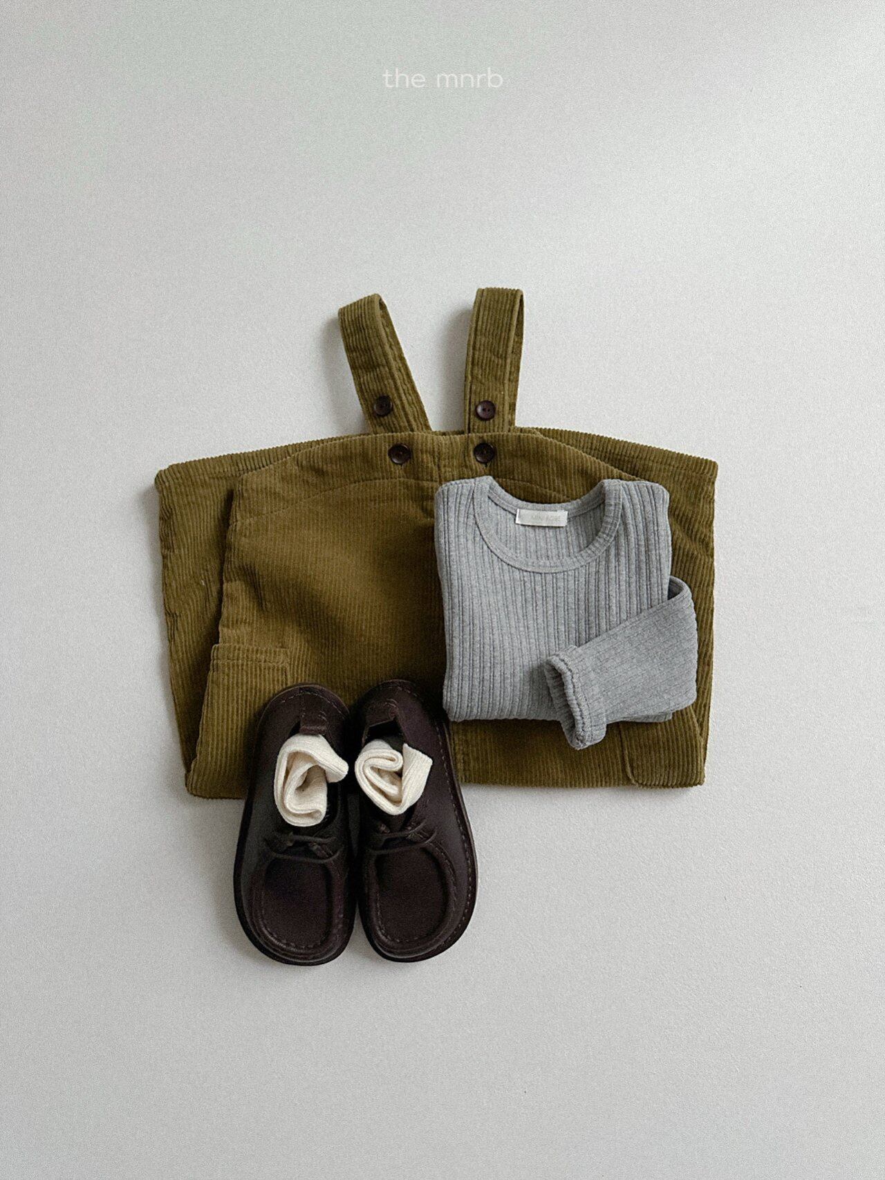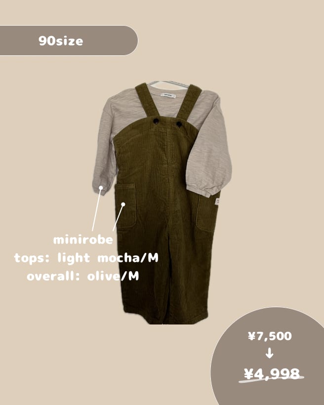 コーデュロイ素材でoliveカラーのオーバーオールは他と被らなくておすすめ.