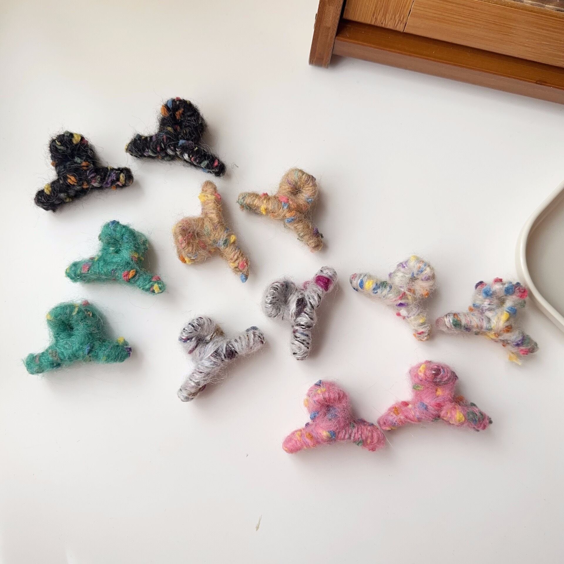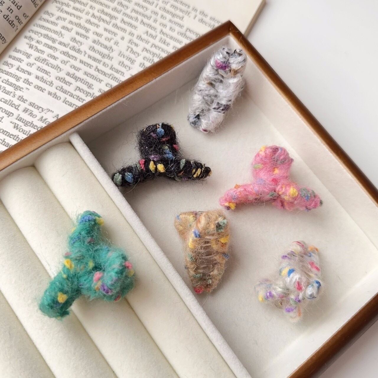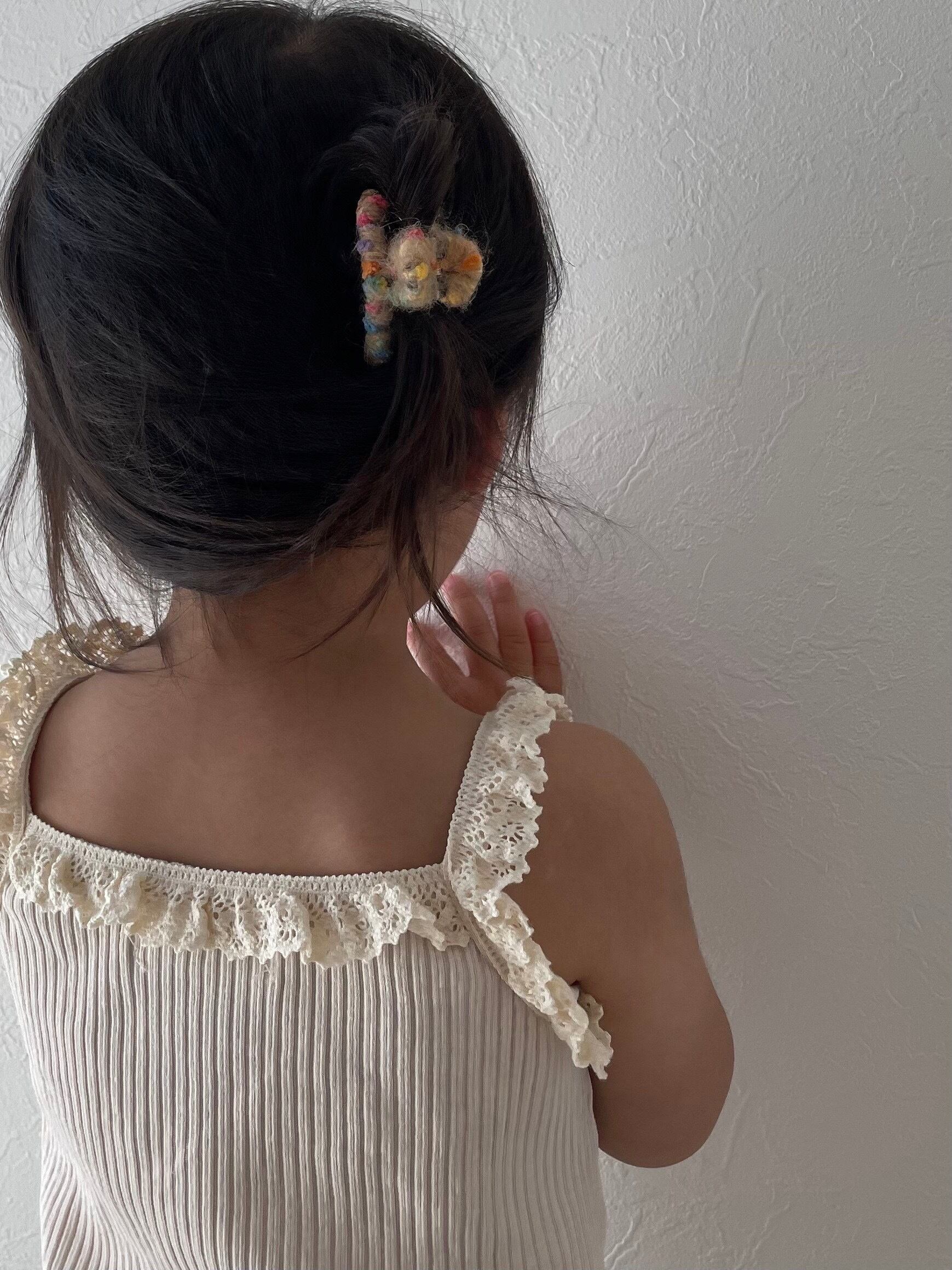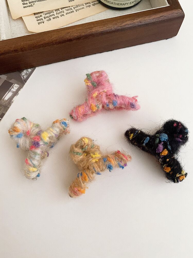 つぶつぶ生地が可愛いミニヘアクリップ.